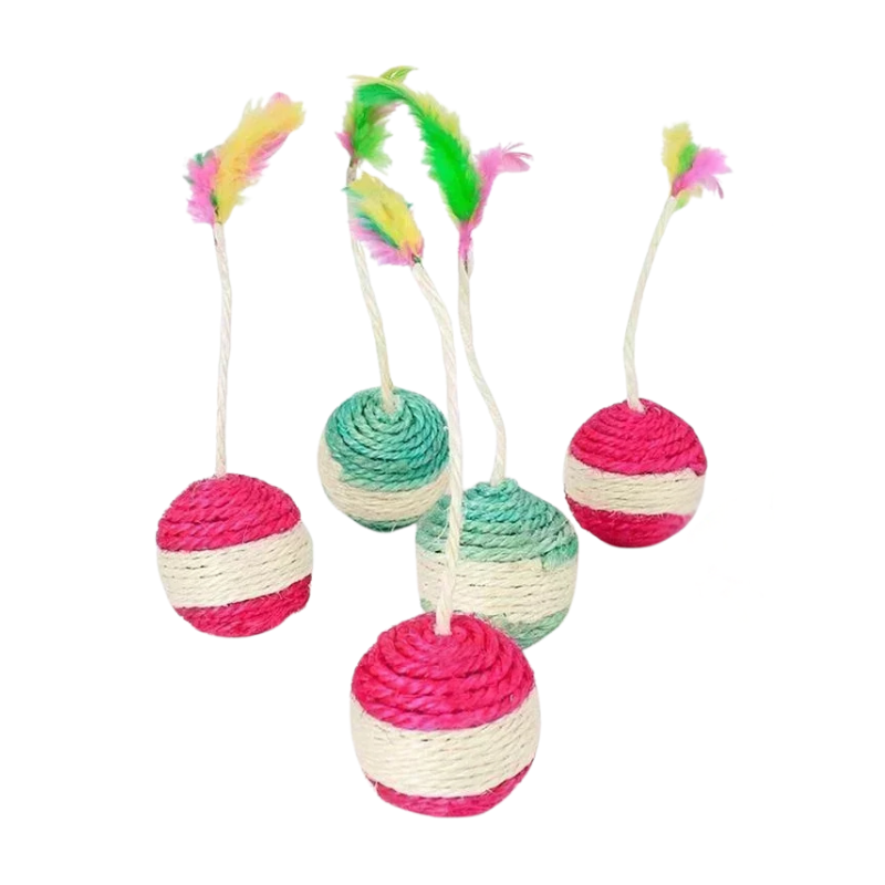 Sisal Ball Toy with Colorful Feathers