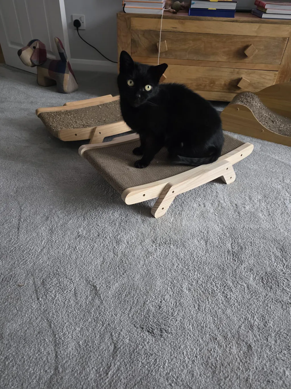 Ergonomic Cat Scratcher with Solid Wood Frame